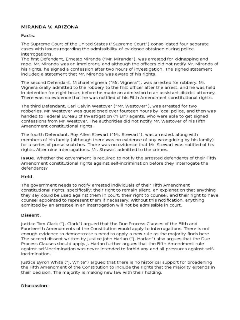 Pdf Miranda V Arizona 384 U S 436 1966 Case Brief Pdf Robert Rankin Academia Edu